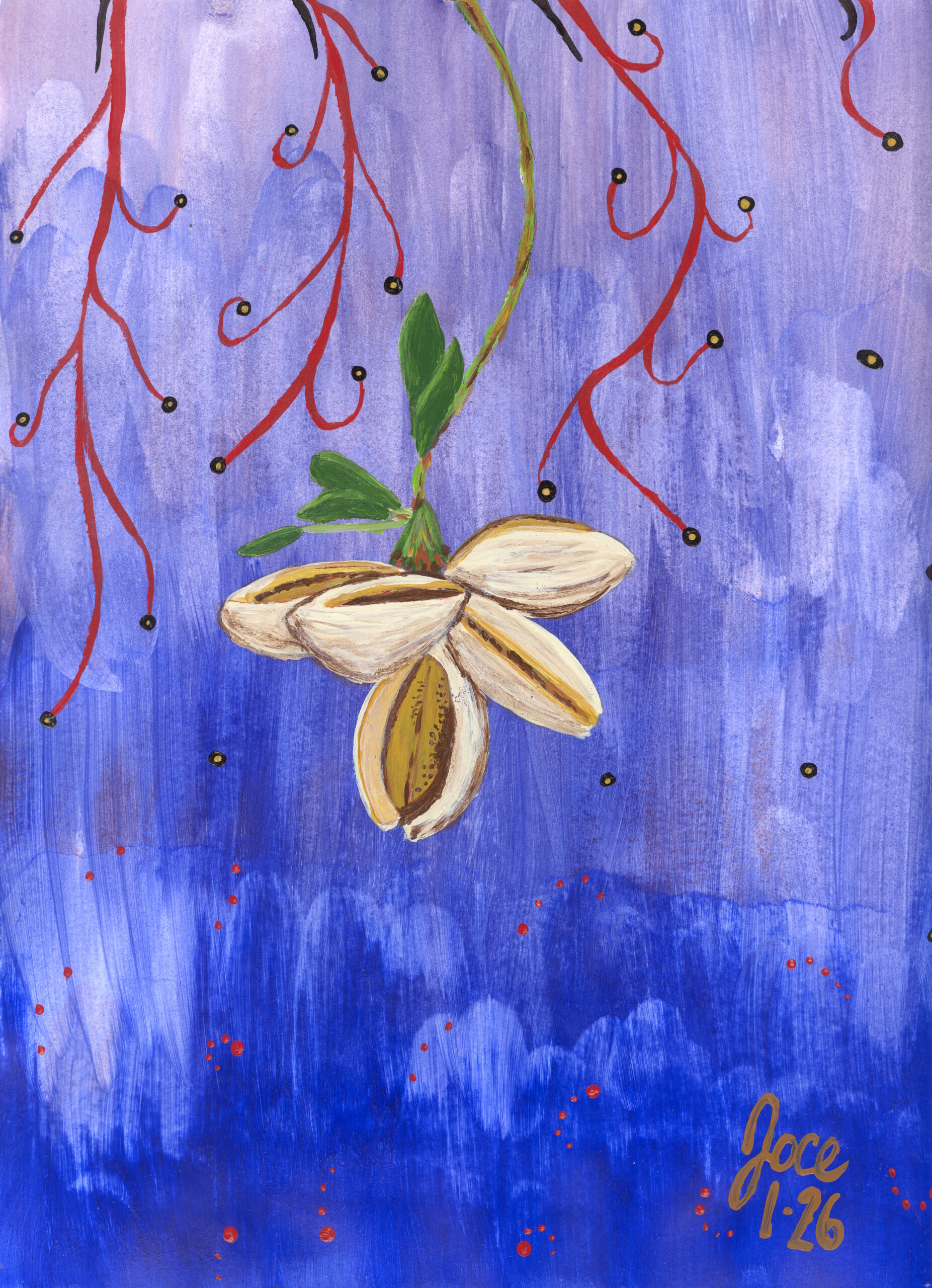 Explore the vivid symbolism of nature with our latest art series, The Hard Shell. This collection masterfully captures the essence of organic protection and the warmth of growth, making it a perfect addition for those seeking modern botanical decor. The series opens with “Waiting at the Gateway,” where the contrast between detailed flora and a minimalist, expansive landscape creates a sense of profound anticipation. “Suspension in Cobalt” introduces a striking abstract aesthetic, featuring husks floating in a textured indigo sky, accented by whimsical red swirls. Completing the collection is “Saturated Harvest,” a bold display of color where lush, green ripening forms dominate a vibrant pink canvas. These artworks serve as a visual metaphor for resilience and the beauty found in the stages of development. Which piece best reflects the balance of protection and growth in your home?